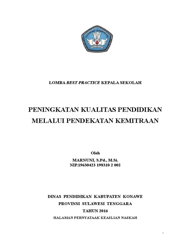 Finalis lomba penulisan best practice kepala sekolah tahun 2016 jenjang sekolah menengah pertama smp tingkat nasional yakni. Dibawah ini adalah link download file word contoh laporan best practices kepala sekolah yang dibuat oleh Bapak Aina Mulyana dari SMP N 2 Cikeusik Kabupaten Pandeglang. Banyak kepala sekolah yang mencari contoh best practices untuk kepala sekolah.