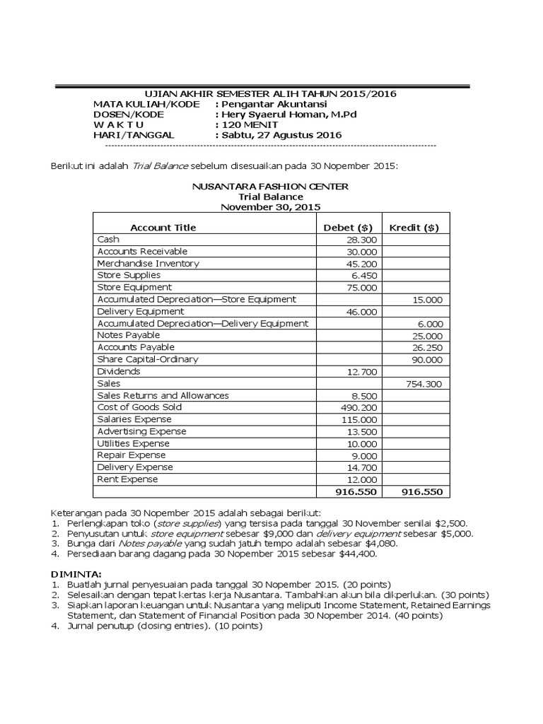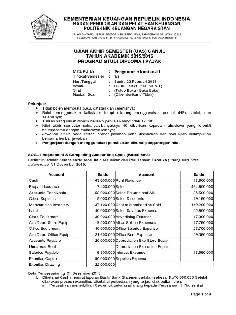 Soal Uas Pengantar Akuntansi 2016 Docx