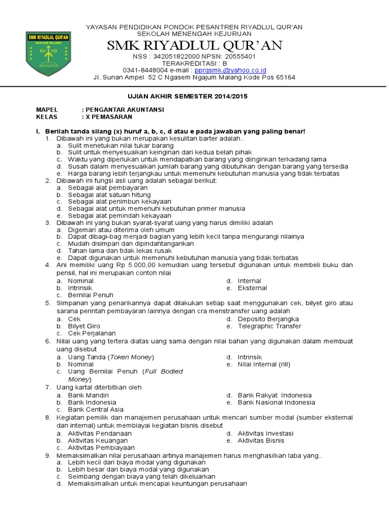 Soal Uts Pengantar Akuntansi Semester 1 - download.